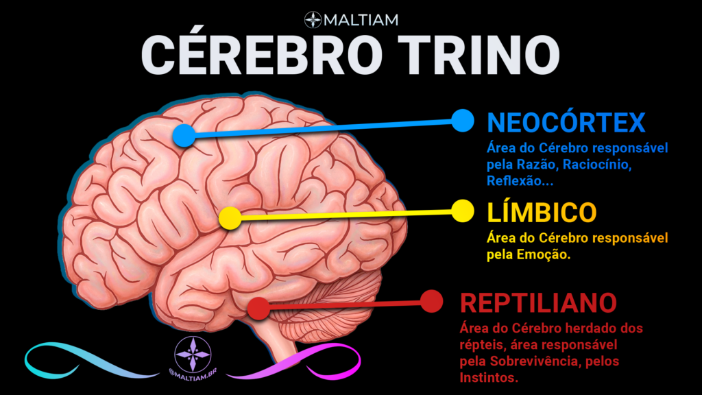 Cérebro Reptiliano: A base primitiva, governando os instintos de sobrevivência, reações automáticas e, infelizmente, o medo.